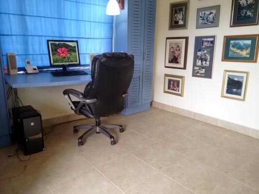 The third bedroom can also serve as an office.Lush tropical rainforest surrounds the home, yet it has views across the coastal plain to the Caribbean Sea. The landscaped grounds host a multitude of flowering trees and shrubs, and the orchard has a variety of fruit trees. It sits at an elevation of 200m. Cooling ocean breezes make air conditioning unnecessary.